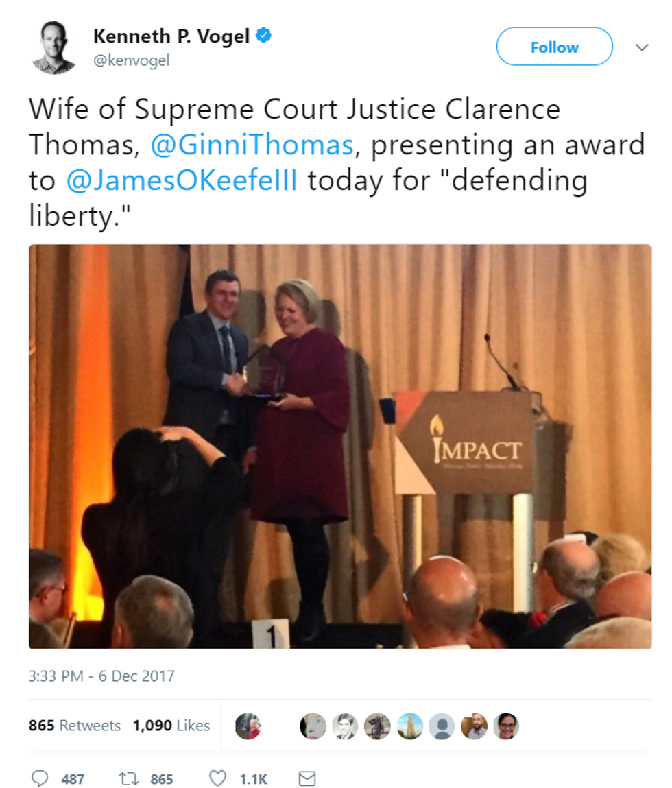 Clarence Thomas's Wife Gives James O'Keefe Award For Defending Puberty