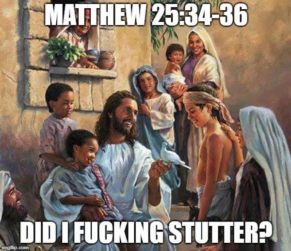 Maybelle knows that when God wrote "love thy neighbor" in the Bible, he meant "love thy American neighbor." Likewise, all that shit about hospitality and caring for strangers in the Bible? ONLY AFTER THEY SHOW YOU THEIR PAPERS.