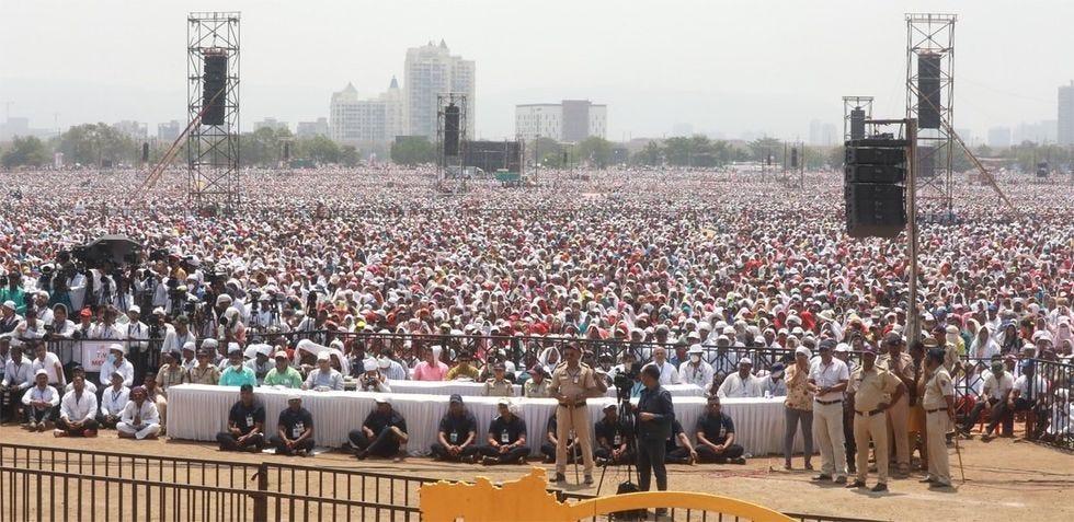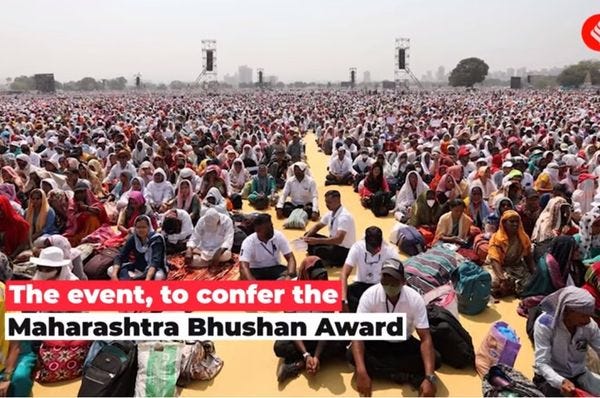 On Sunday, Reuters reports, hundreds of thousands of people sat in the hot sun for hours during an award presentation in an empty field near Mumbai. As the event went on, the high temperature reached 38 degrees Celsius (100.4°F), with high humidity, which Reuters says is normal for this time of year, although sitting out in the midday sun for hours isn't. At least 11 people died of heatstroke, and about 50 were taken to hospitals; the Times of India reports that another unconfirmed tally set the death toll at 13, and adds that