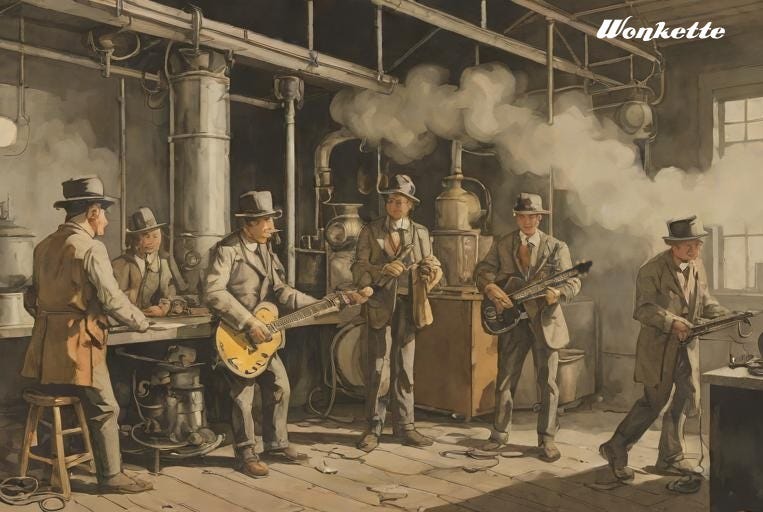 I guess our old-timey Ramones stand-ins are playing ... steam punk rock.