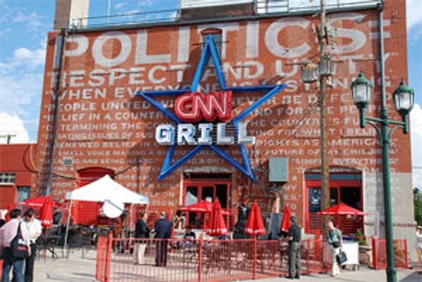 We advise all readers to crush at least four shots of cheap Canadian whiskey before turning on CNN during this convention. They have been talking all afternoon about, what else, The Clintons and their Drama. CNN's Denver headquarters are comically located here at the "CNN Grill," which we assume is supposed to highlight some vague Western aesthetic, when really it's just scribbling over any imagined aesthetic with random, vulgar words. Fishbowl DC has photos from inside. It looks like a decent place, except for all the Dana Milbanks there. [ Fishbowl DC , Flickr ]