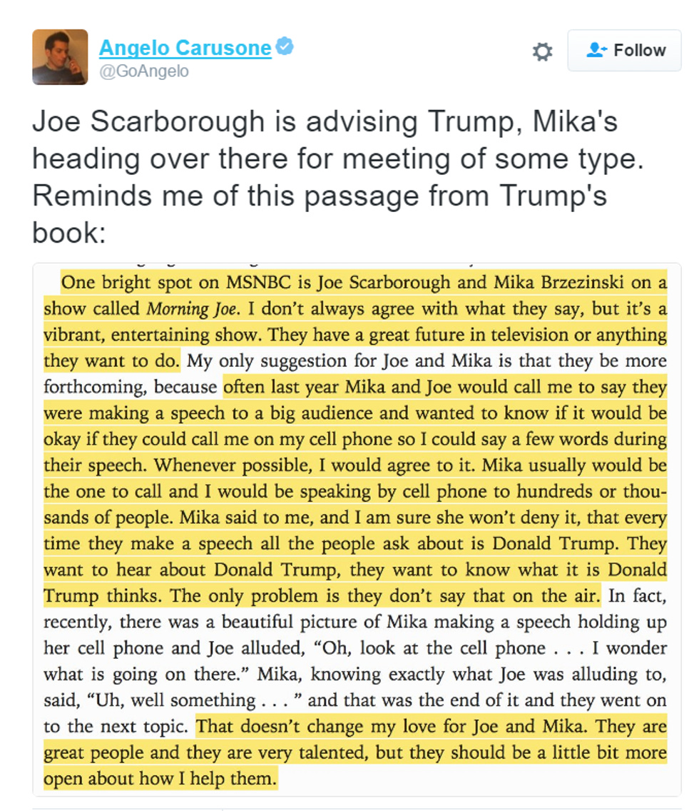 Haha, Donald Trump's own book says Joe 'n' Mika have been in his harem for YEARS.