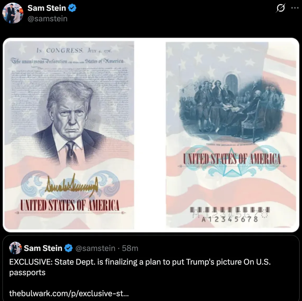 The state dept is finalizing a plan to put TFM picture on US passports