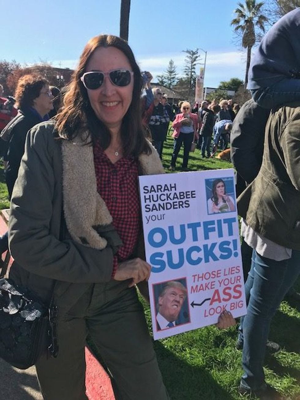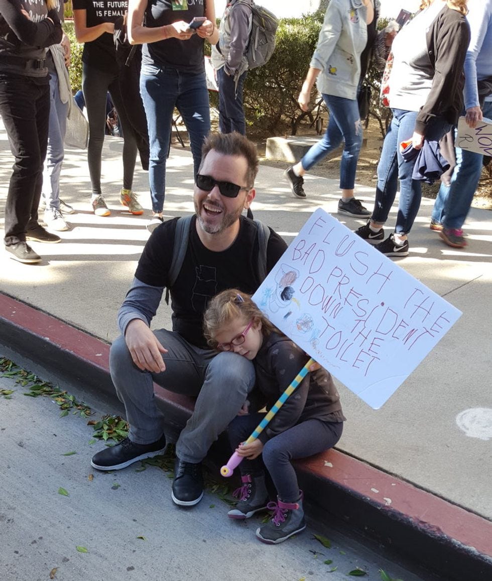 Mindi from the LA March sends this adorable pic -- she wrote and made the sign herself! Good girl!