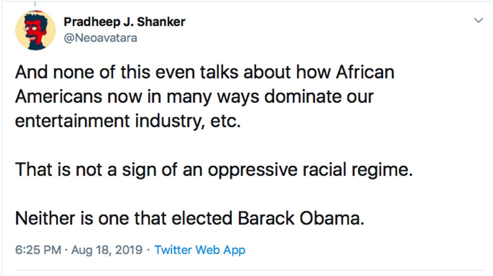 The Doctor put it best: "The very powerful and the very stupid have one thing in common. They don't alter their views to fit the facts. They alter the facts to fit their views, which can be uncomfortable if you happen to be one of the facts that needs altering." Black Americans and our history are the uncomfortable facts that contradict the American myth conservatives cling to so dearly. There's never been a point in US history where that's not the case. Malcolm X argued that what distinguished America from other racist countries or outright dictatorships was hypocrisy: America preached "liberty and self-governance" but practiced racial tyranny and oppression.