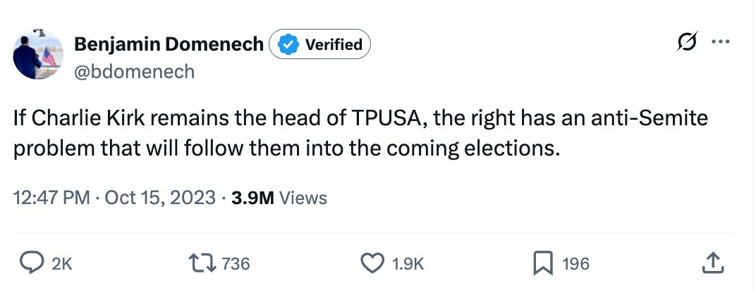 More specifically, no one would call Kirk a Nazi if he hadn’t been out here saying Nazi shit.