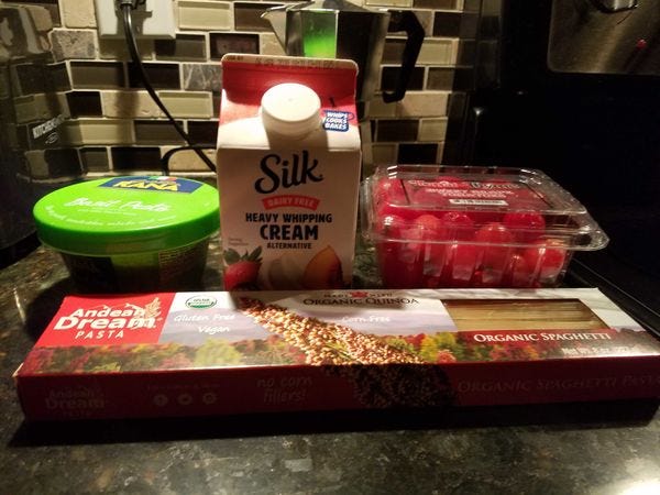 They did, however, have dairy-free heavy cream and gluten-free quinoa pasta. And so, despite being warned by many on Twitter that it wouldn't thicken and that it would be weird ... I made it work .