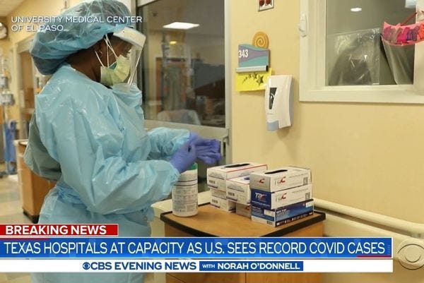 In Texas, state officials are sending medical personnel and supplies to El Paso, where hospitals are filling up. Gov. Greg Abbott announced Sunday that the El Paso Convention and Performing Arts Center would be opened to expand treatment space for COVID-19 cases, with an overall capacity of up to 100 beds. El Paso County Judge Ricardo Samaniego ordered a curfew and said the hospitals were at "a crisis stage." A report by the University of Texas at Austin warned last week that El Paso hospitals could run out of beds by November 8, and that five other parts of the state have a 25 percent chance of running out of hospital space within the next three weeks.