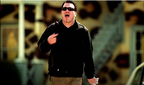 One of the musical acts headlining this festival, of those that actually showed up, was Smash Mouth. Yes, Smash Mouth. The band that comes only second to "Nickelback" on everyone's "worst band ever" list. The band the bartender plays when it's 2 a.m. and people won't leave. The guys who put the kibosh on the ska-punk revival despite not really even being a ska-punk band. The guys who came out with "All Star," the song that will forever strike fear into the heart of anyone who was alive in 1999. And it's always seemed that at least part of the reason for Smash Mouth's 1990s band villain status is that lead singer Steve Harwell always just kind of seemed like a dick (a thing that was kind of confirmed when he was on "The Surreal Life"). In fact, I have often wondered if the incessant mocking of the Food Network's Guy Fieri — who seems like a truly good dude — was not a little bit due in part to his resemblance to "the guy from Smash Mouth."