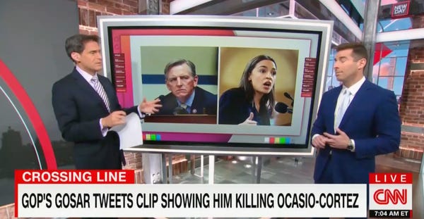 CNN legal analyst Elie Honig said Tuesday that Gosar's tweet was "unbelievably dangerous and irresponsible." He argued that the House should consider expelling Gosar.