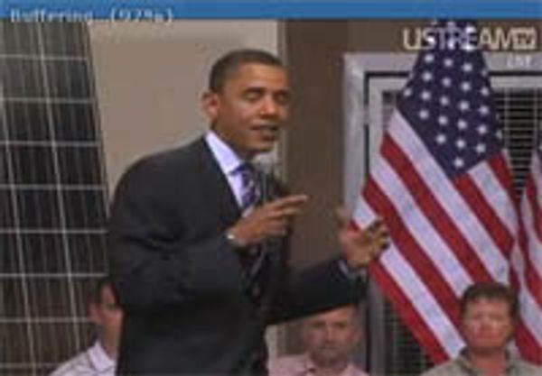 Oh hey, it's a live feed of Barack Obama doing stuff! Now you can masturbate to his glorious musings whenever you want to -- even at the office. At time of writing he was going blah blah blah about energy policy. Catch this exciting new Internet development while it's hot! Oh and you might have to hit REFRESH REFRESH to make the thing work. [ BarackObama.com ]