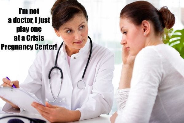 Crisis pregnancy centers (CPCs) -- clinics that exist for the sole purpose of discouraging women from having abortions -- have been known to engage in some fairly shady practices. From masquerading as full-service health clinics without having an actual doctor on staff, to pretending to offer abortion services, to lying to their "patients" about abortion resulting in breast cancer and mental health issues they made up themselves, like "Post-Abortion Syndrome" and what have you.