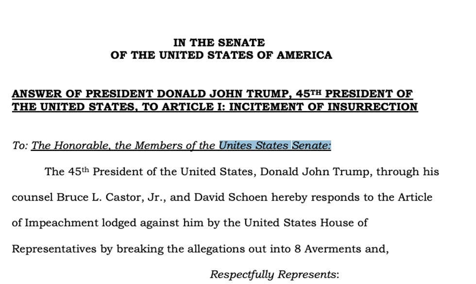 Which is perhaps why the response leans so heavily on the argument that impeachment is UNLEGAL now that Trump is out of office.