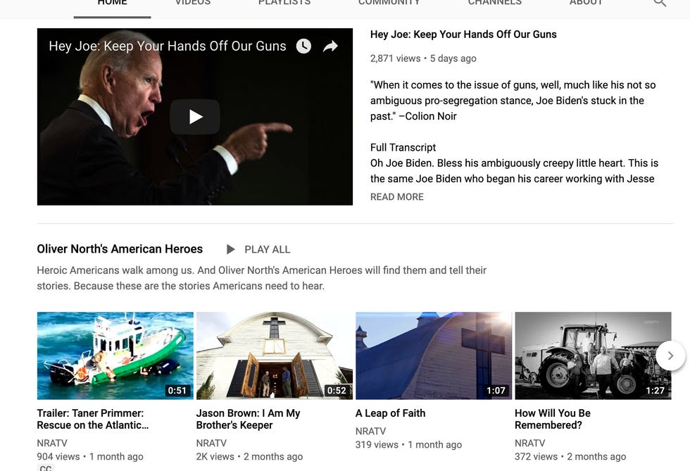 So's you don't think I'm hiding their big guns, the tippy-top video on the NRA's Youtube channel does have more than 137,000 views -- in seven months, and it autoplays.