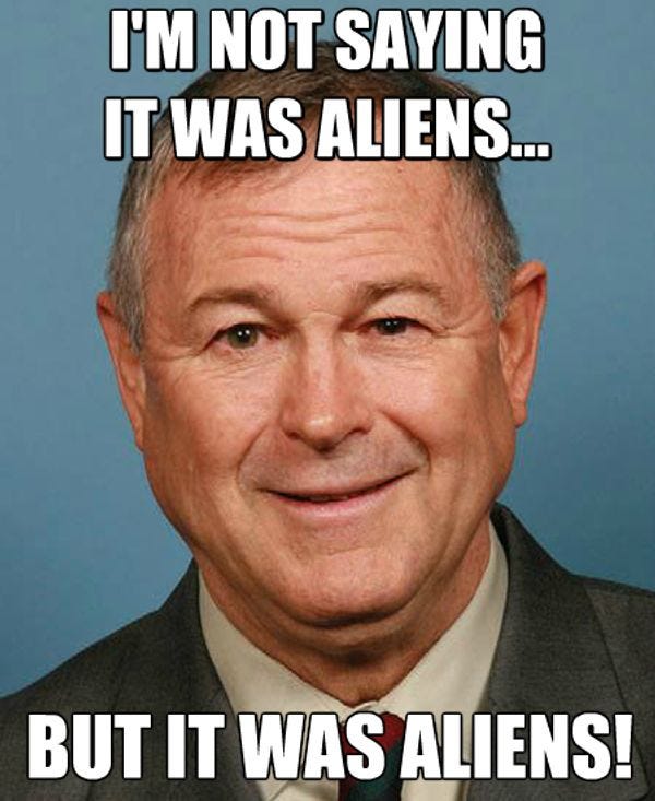 So is Dana Rohrabacher just weird, or is he willing to risk seeming weird because he's testing whether NASA knows about the secret child sex-slave colonies up there, huh?