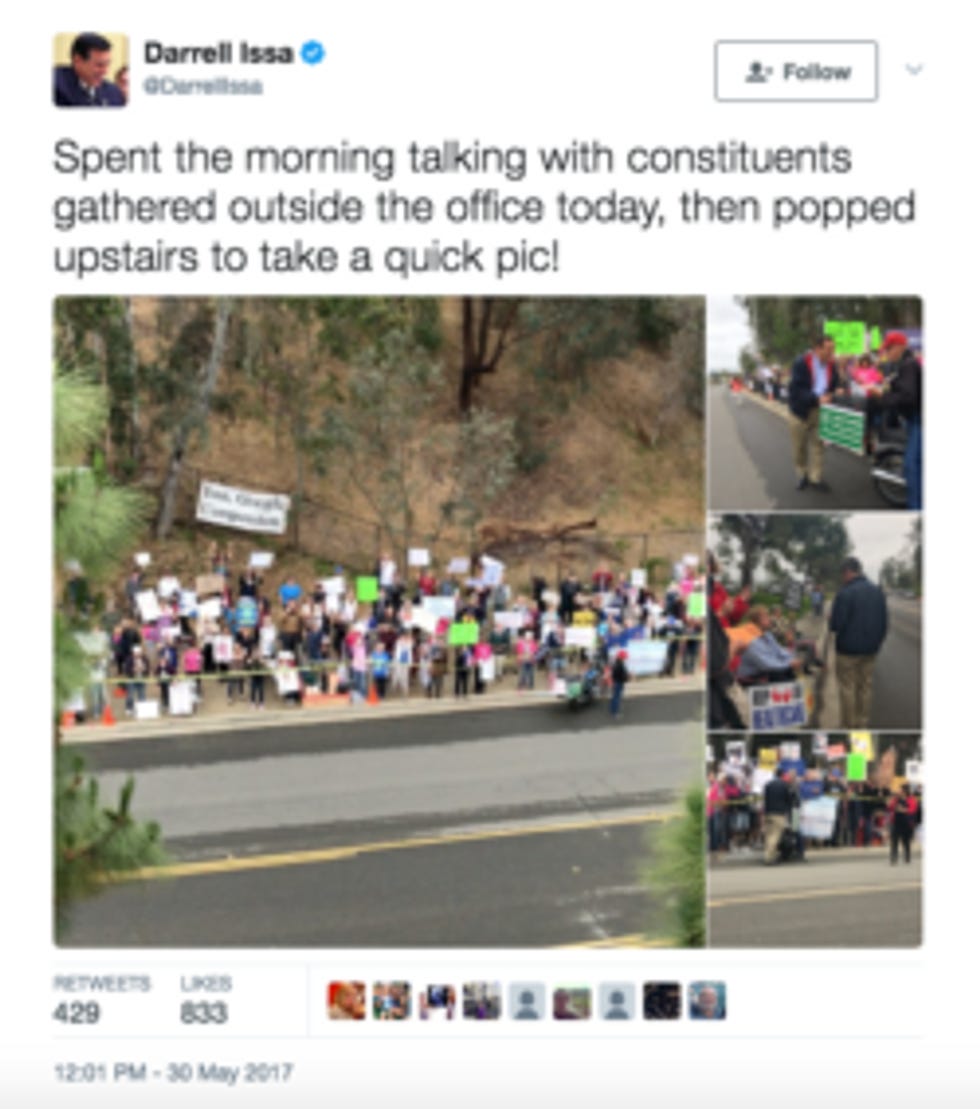 Darrell Issa just announced a fake, invite-only "town hall". Maybe because this happened at his last one. Join us: https: //t.co/WLBYaPIedP pic.twitter.com/EaWFrYBJRe