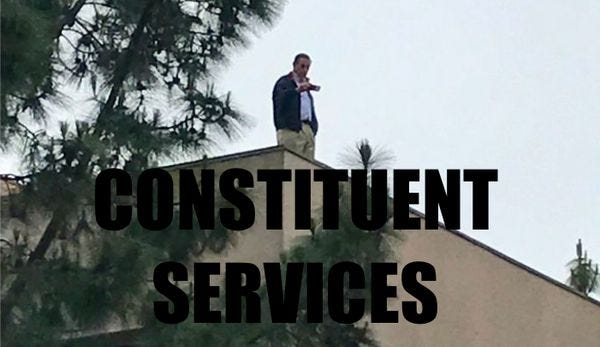 At which point, the good Congressman went inside to make some phone calls to a reporter at the San Diego Union Tribune.
