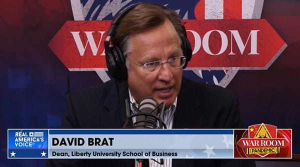 Raise your hand if you remember Tea Party shitlord Dave Brat, who primaried and beat Eric Cantor back in 2014, but then lost to Democrat Abigail Spanberger in 2018. He is a ginormous and extremely un-Christlike asshole. So it makes sense that he is now the dean of the business school at the Falwell clown college known as Liberty University.