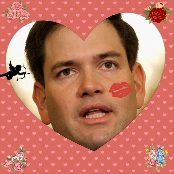 Truly, nothing can extinguish the inexplicable torch Brooks is carrying for Rubio. His love leads him to write one million words of what we're sure he thinks are trenchant cultural observations about Trump on his way to open-mouthed kissing Marco, and if we have to read it, you have to hear about it.