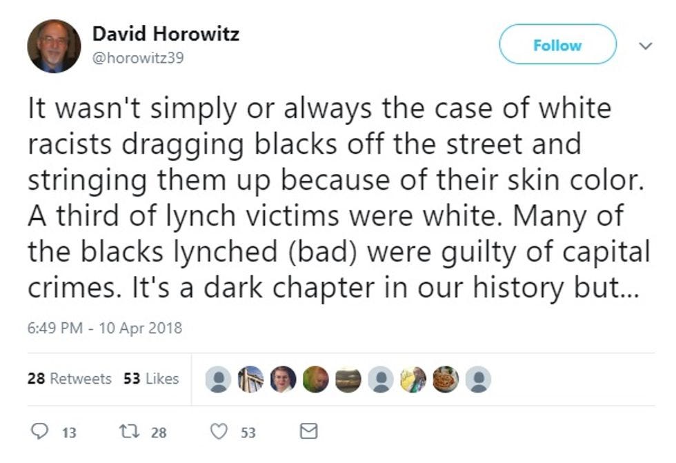 David Horowitz Says Lynching Wasn't Racist, Except Against Whites