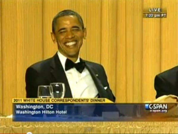 Here, to tide you over until the next tape comes out (you are not going are you? If so, why didn't you 'vite us?), is some hilarity from last year, mostly of Bama being a celebrity (and killing Bin Laden). You could also go back and watch the guy from SNL zing Bammerz with such charm for being a huge sellout, and also for not getting Bin Laden (whoops), or Donald Trump.
