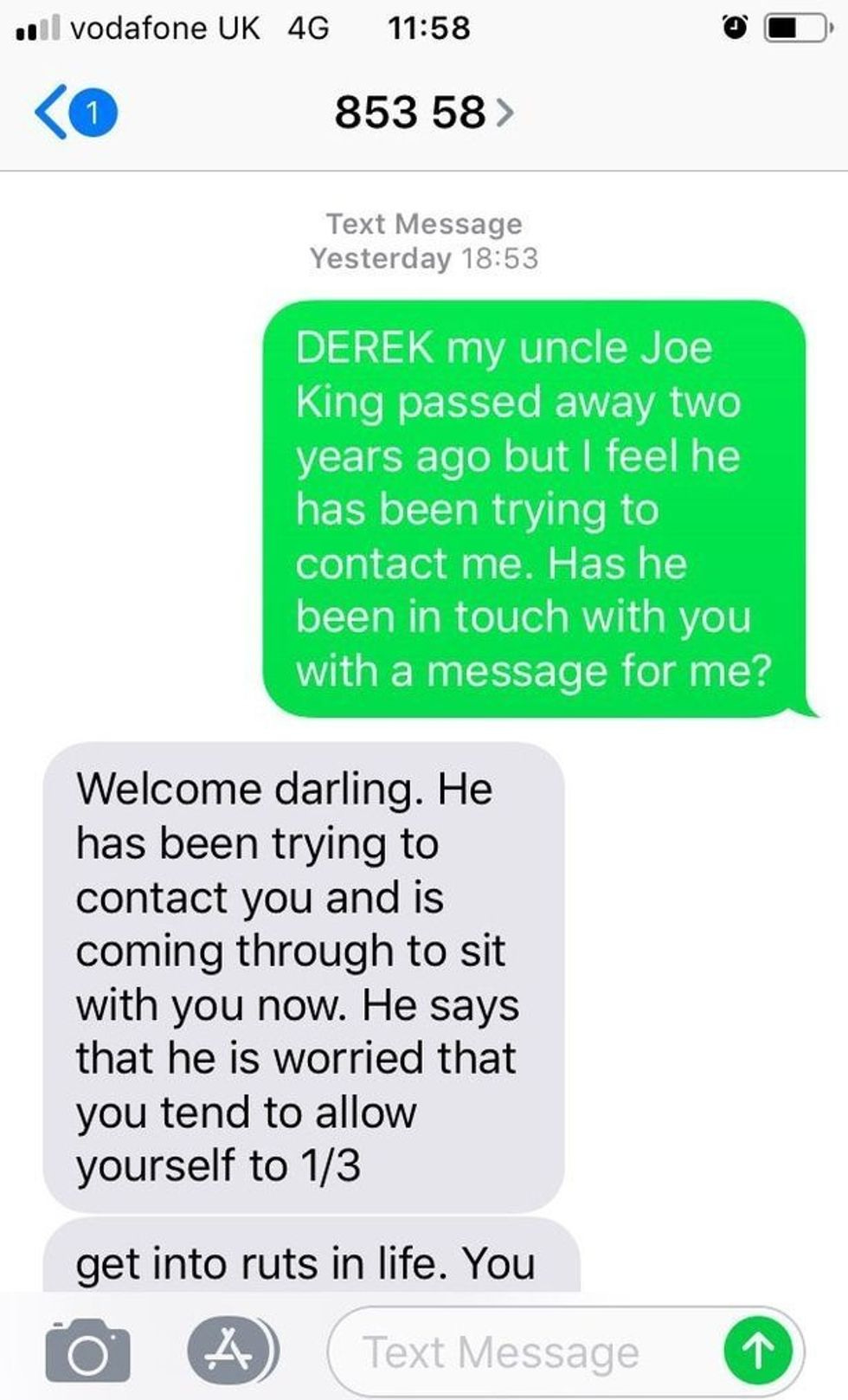 Posing as a bereaved relative, our reporter texted to say his uncle Joe King had passed away two years ago, and asked to make contact.
