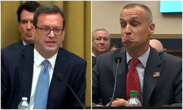 Tuesday, after one million Democratic congressmen and slightly fewer Republicans had finished volleying back and forth five-minute segments questioning Corey Lewandowski, a piece of shit who behaved so rancidly in his testimony he could have been jailed on the spot, a fight broke out among leadership on the House Judiciary Committee. GOP ranking member Doug Collins was furious furious I SAY I SAY I SAY, FURIOUS that Democrats passed a rules change last week allowing committee staff to question witnesses after members of Congress were finished. He took particular issue with the fact that attorney Barry Berke, who was technically a consultant but who according to committee chair Jerry Nadler fit the definition of "staff," would be allowed 30 minutes to #lawyer Lewandowski. Indeed, every Republican congressman in the room at that moment turned the hearing into an absolute fuckin' clownshow, as they stalled and hurled their own freeze-dried poo at each other. Jim Jordan and Matt Gaetz played with a lot of poo, as you'd expect.