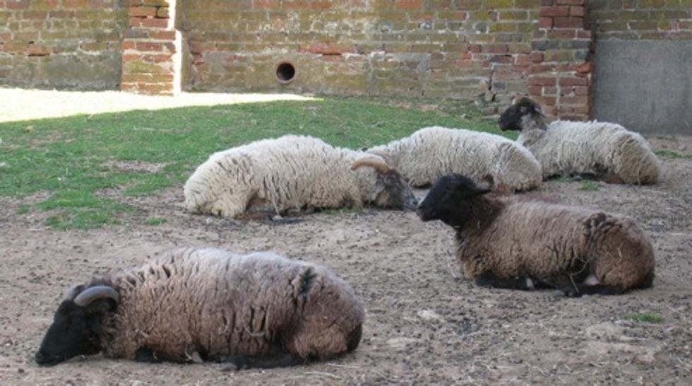 Then we took a little spin around the sheep corral, which was packed to the fence line with dead animals. Or maybe they are sleeping? Swine flu!