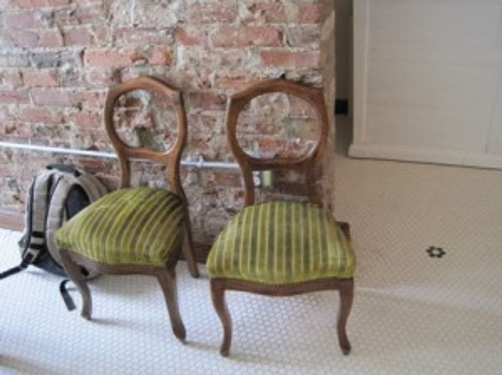 These aren't just chairs. These chairs are relics from AR-GEN-TI-NA. Fact: The store's light fixtures, cabinets, coffee bar and even its trash bin are all Argentine antiques.