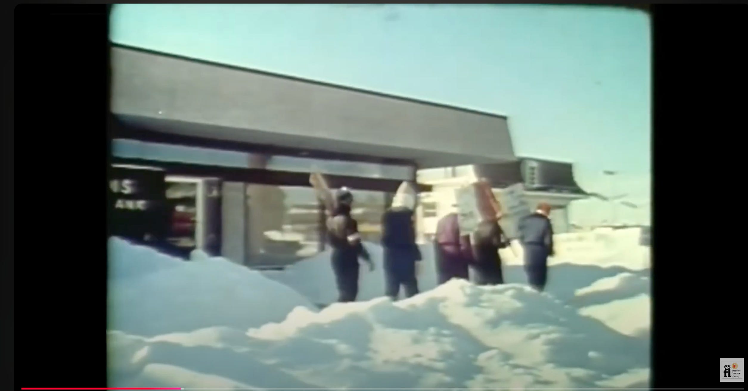 So, on a cold December day, the women decided they had enough and would strike and walk a picket line. How cold was it that day? Oh, the wind chill was -70. The 1970s was a period of labor militancy. Even though they did not have a union, they decided to go on strike. And they were highly committed. They picketed for nearly a year in front of the bank. Pretty amazing given they were such a small number. That also meant picketing in the middle of a Minnesota winter, which is nothing to sneeze at, largely because the sneeze will freeze in the air. They chose to file a complaint with the National Labor Relations Board over their grievances.
