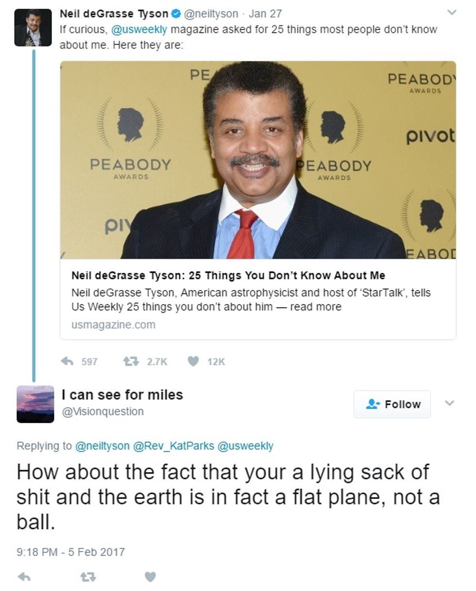 And of course yelling at Neil deGrasse Tyson , that fraud: