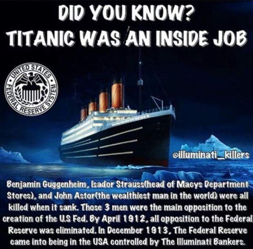 And oh, the retweets! If it's a hidden truth about what THEY are doing to secretly run the world, "Visionquestion" wants to spread the news. Not just Chemtrails and HAARP weather control, but also black chemtrails, which we'd never heard of. Evolution is a lie, of course, as is global warming, and Winston Churchill regularly threw Illuminati gang signs, too. Also -- another new one for us -- the sinking of the Titanic was an inside job, because the Illuminati needed to kill off the three wealthiest opponents of the Federal Reserve and start the first World War, because suddenly the International Banking Conspiracy is full of Jesuits, not Jews:
