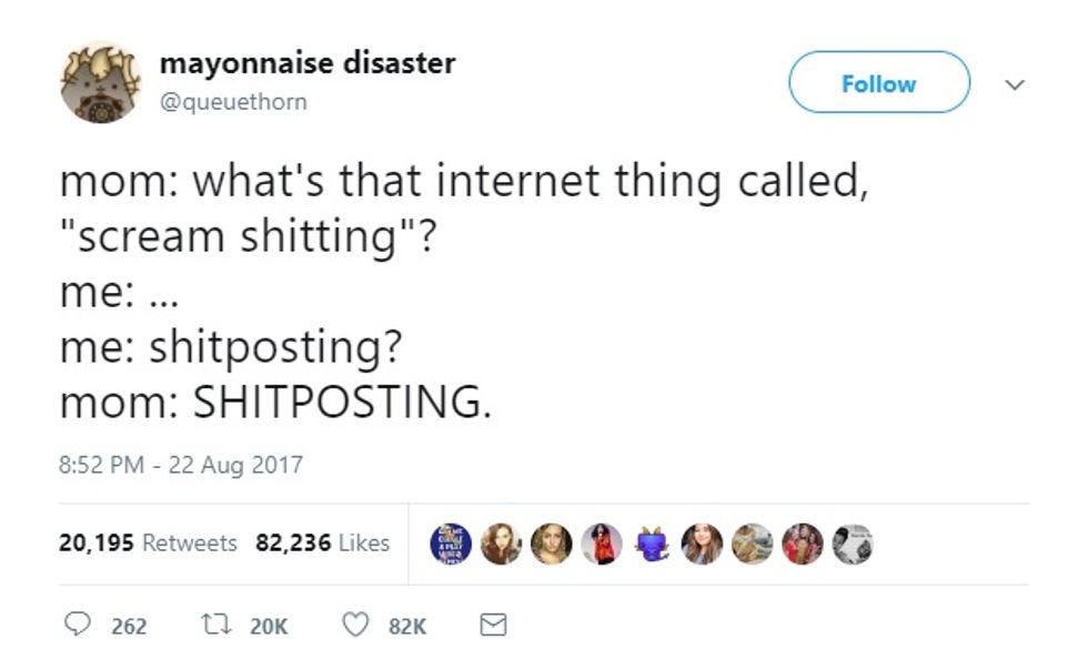 Finally, on the general topic of trolling, we'd be remiss if we didn't call your attention to this Tweet, which is wholly unrelated to Wonkette, but entirely cromulent for today's ShitFerBrains: