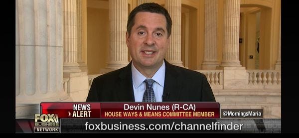 When we last left Devin Nunes he was rolling around in a pile of sleeping cows gleefully shouting "No co-MOOOOOOOO-sion! No co-MOOOOOOOOO-sion!"