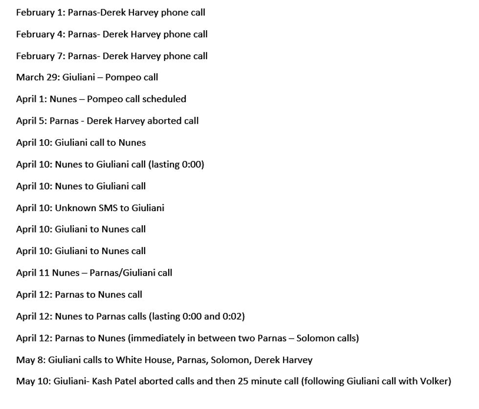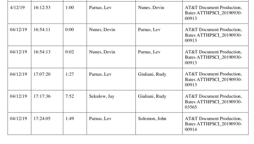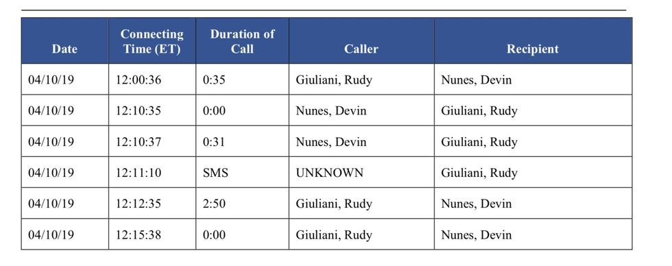 Wanna see some call logs between Rudy Giuliani, Devin Nunes, and indicted chucklefuck Lev Parnas and also some other folks, including Secretary of State Mike Pompeo? Ryan Goodman tweeted a summary of what the logs show: