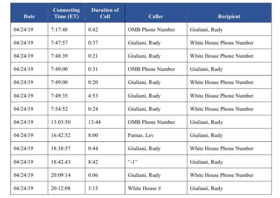 There are also lots of calls between Rudy Giuliani and Mick Mulvaney's Office of Management and Budget (OMB), which you'll remember as the chop shop that chopped off Ukraine's military aid, which had already been appropriated by Congress, while Trump was committing bribery and extortion against Ukraine to pressure them into meddling in the 2020 election on his behalf.