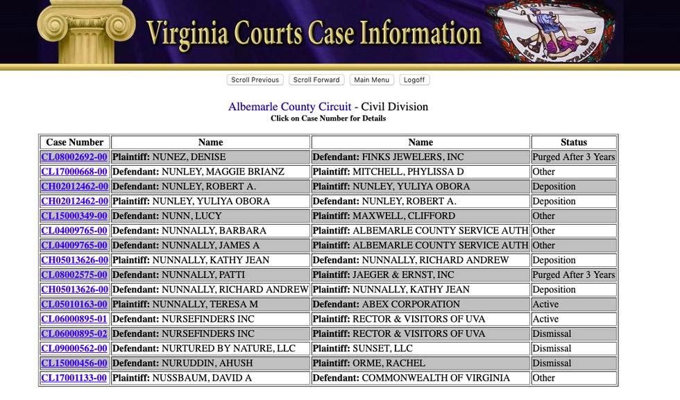 And as of this morning, searching the Albemarle County docket for the last name Nunes yielded no hits.