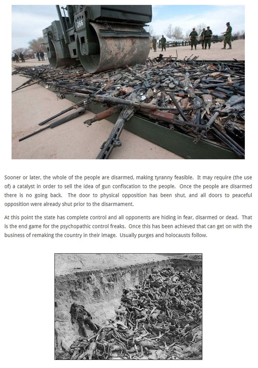 Within a few more column inches, we learn that crushing guns with a road roller in Mexico (after they were seized from drug gangs) will inevitably lead to the mass graves of Bergen-Belsen, fifty years beforehand, because that is history, man, and also heavy construction equipment being used for evil: