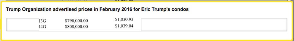 Poppy Trump bought 100 Central Park in 1981, when the building was 80 rent-controlled apartments. Trump redeveloped it as 70 luxury condos, renaming the building Trump Parc East and selling the units for an average of $3.5 million . Even Donny Jr. bought one in 2007 for $2 million. In February 2016, Trump listed unit 13G for $790,000, and 14G for $800,000 . But two months later, he sold the condos for $350,000 each. HUH!