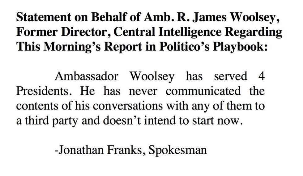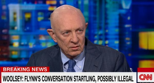 So ... What was James Woolsey, Flynn's former board member and former Trump transition official, doing within a 300-mile radius of Mar-a-Lago? Let's see what his spokes-dork says: