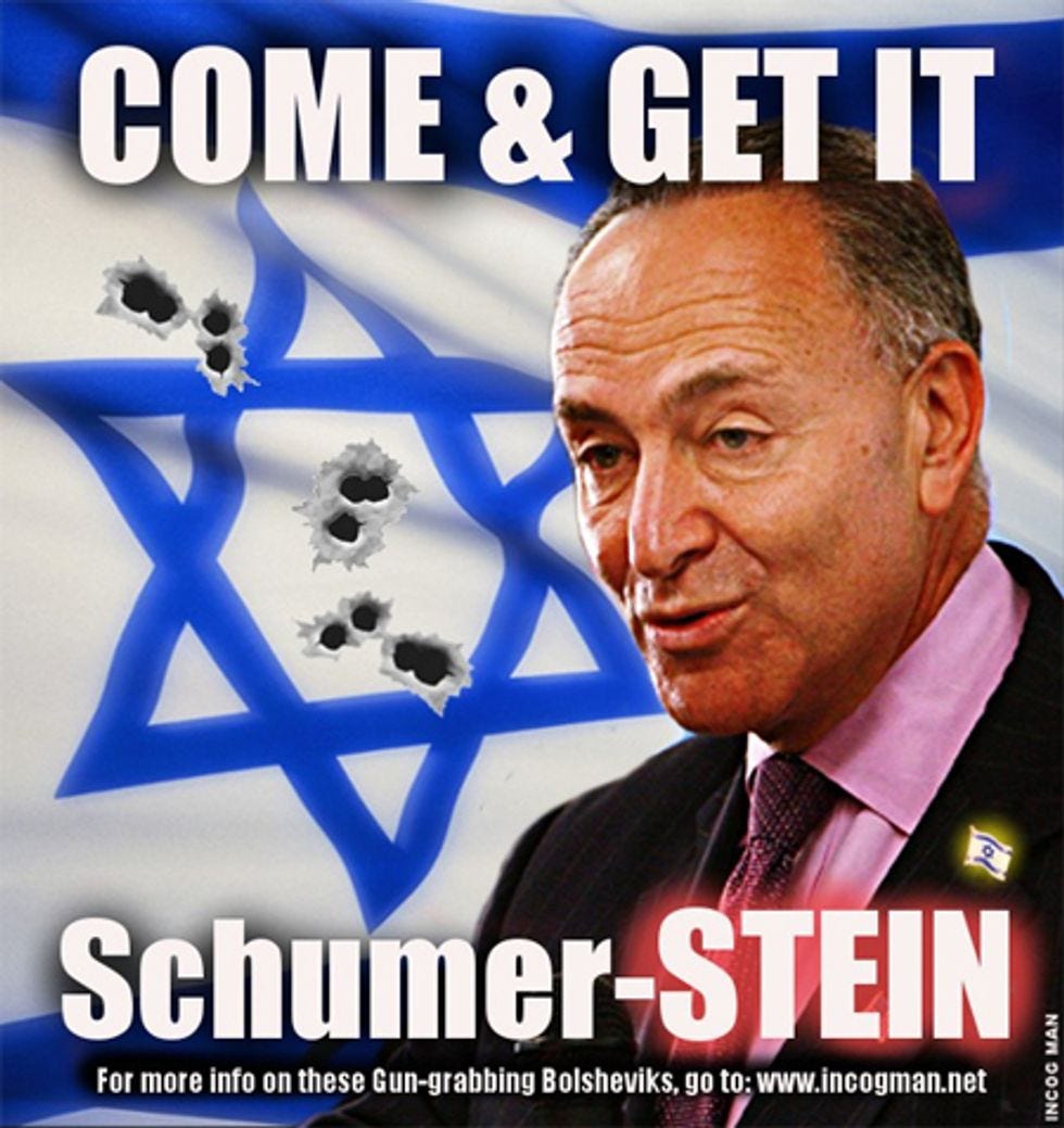 Oh, yes, and Schumer is Jewish, which people keep noticing for some reason, like the nice Arkansas state senator (and U.S. Senate hopeful) who definitely didn't mean anything by it when he called Schumer "that Jew" -- it was simply a neutral description. Schumer created rather a to-do last summer when he came out against the Iran nuclear deal because he said it was bad for Israel. Just in case the fact that he's Jewishandpro-Israel wasn't enough to get the point across, some gun-humping anti-Semite figured "Schumer" didn't sound Jewish enough to be scary, as names go:
