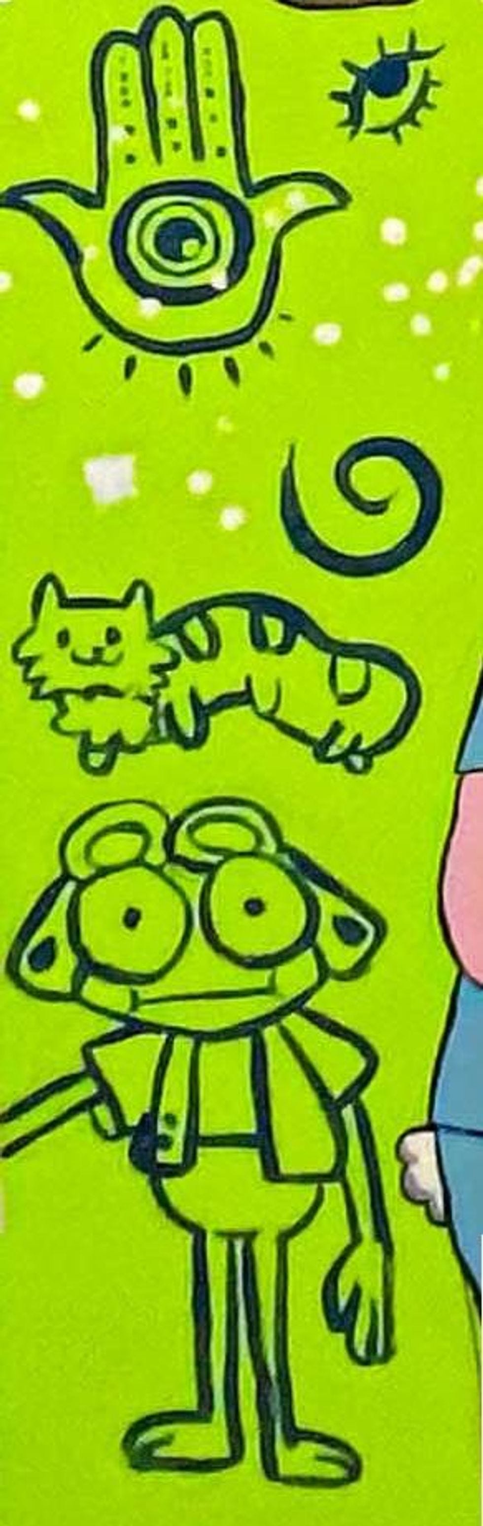 Eventually, the school reached a "compromise" that left the art in place — kind of. Since the line drawings weren't included in the original proposal the girl submitted, they'll be painted over, eliminating the oni and the hamsa hand, as well as the cute little froggy dude and other whimsical drawings, and everyone will be happy, OK?