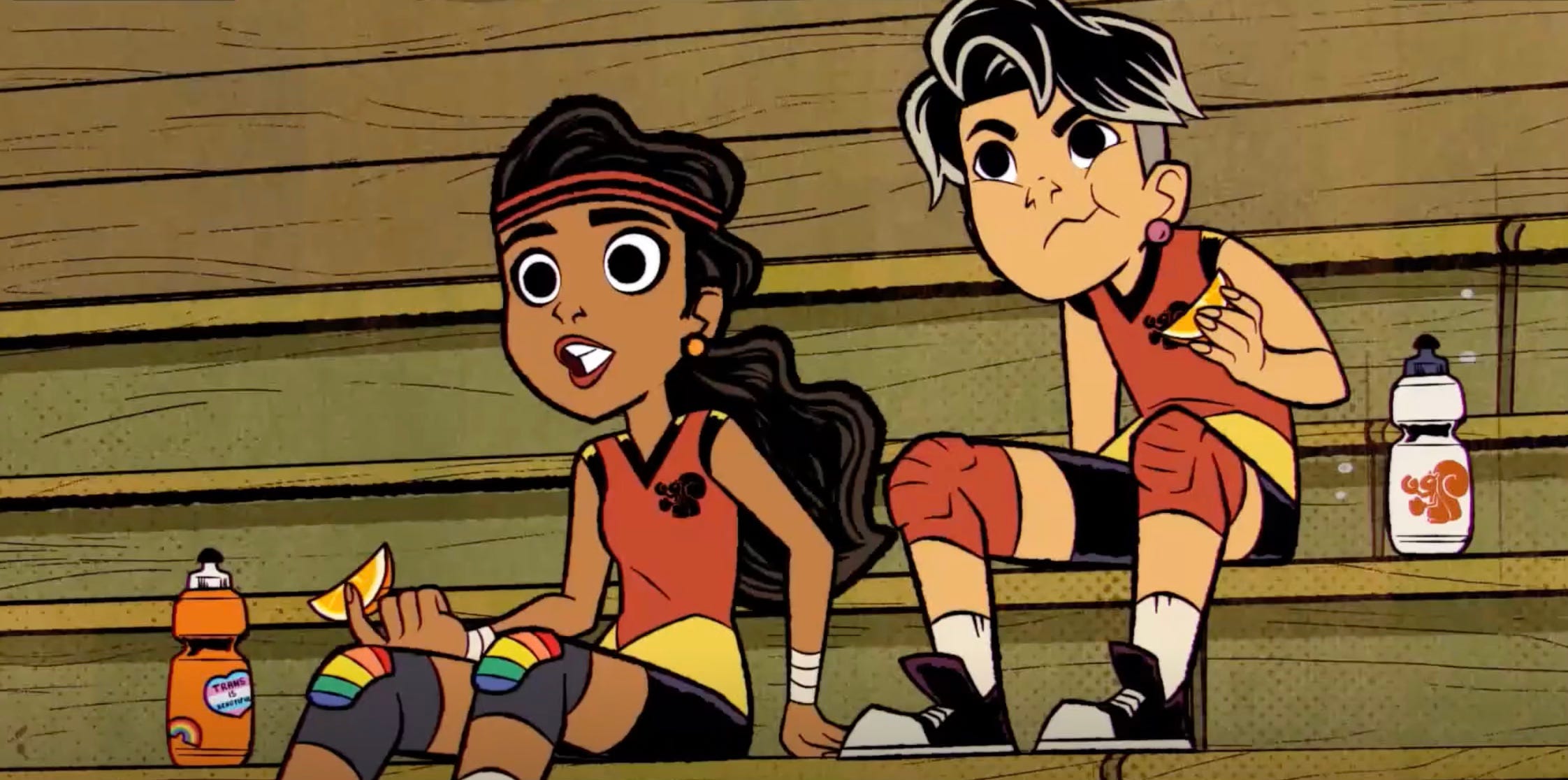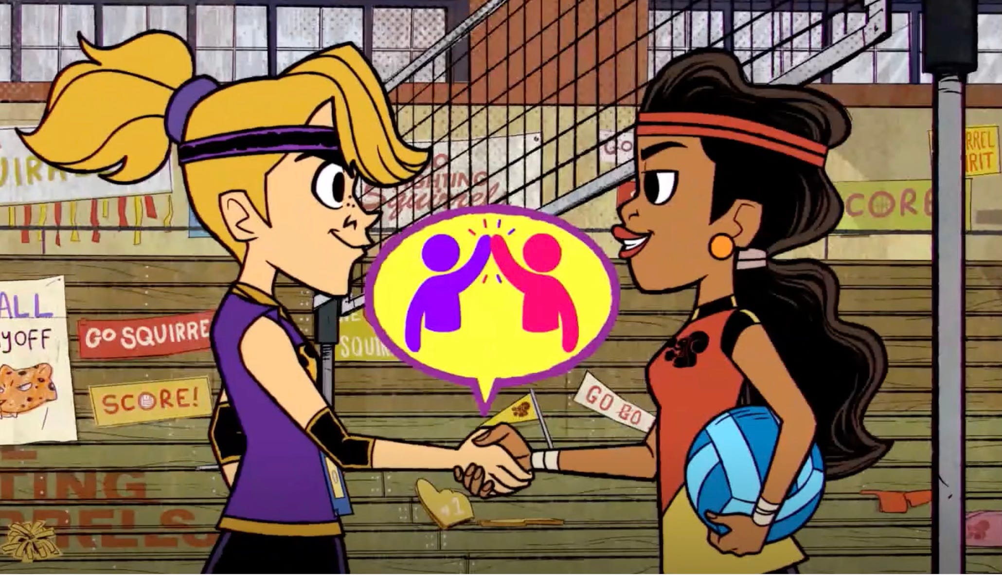 In “The Gatekeeper,” all Lunella’s girlfriends play for Intermediate School 833’s girls’ volleyball team (“The Squirrels,” naturally) and are set to play against the presumably face-eating Lady Leopards, led by Coach Greer and her daughter, team captain Bella. The seemingly fierce Greer turns big ol’ softy before the game, sharing orange slices and offering the Squirrels first crack at the court to warm up. But after MG’s besties have their chance at the court and while the Leopards are taking their turn, Brooklyn and the non-binary Tai chat on the bleachers about how the orange slices take them back to the long-ago days of 5th grade (last year, natch — ed.) and the dark times when Brooklyn had to play on the boy’s soccer team.