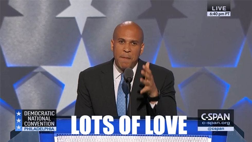 9: 38 Actual Superhero Cory Booker is talking. You Berners hush, now.