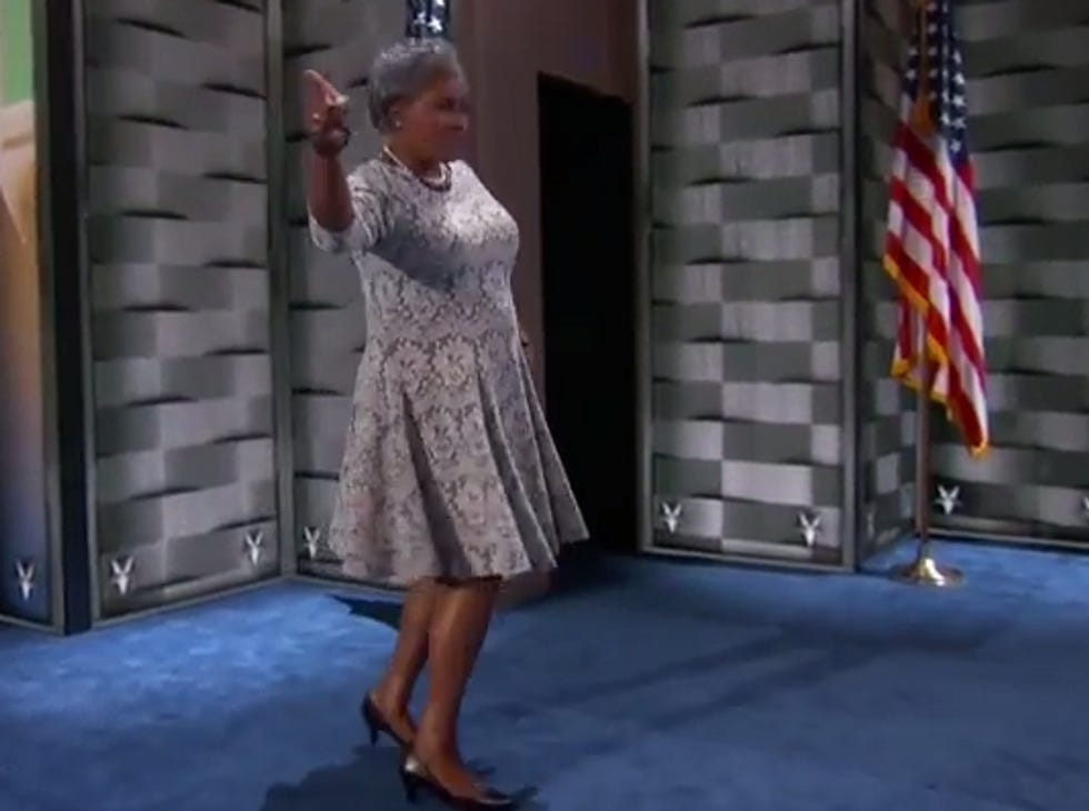 DNC vice-chair Donna Brazile got more applause for saying "As your incoming chair of the DNC..." than for anything else in her speech, although she also rounded it off with a rousing "As long as she's in charge, we're never goin' back, and that's why I'm with her!" And then she danced offstage.
