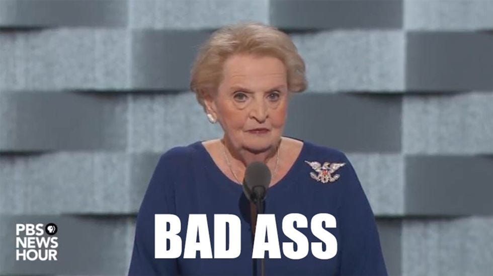 We made it to Night Two of the Democratic National Convention, the roll call vote is all finished, and we can formally say America now has its first female major party nominee in history. Yes, Queen Elizabeth I is saying "So what? Big deal" across the centuries, but she didn't have to go up against the rightwing media machine for 24 years. Your Big Deal keynote speaker tonight is Bill Clinton, and if he decides to do an extemporaneous three-hour, statistic-packed, 100-percent-accurate takedown of Trump's "foreign policy," we are ready for it. We're betting he looked at Trump's instagram video bragging about how much applause he got, and how long he talked, and thought, "Challenge accepted."*