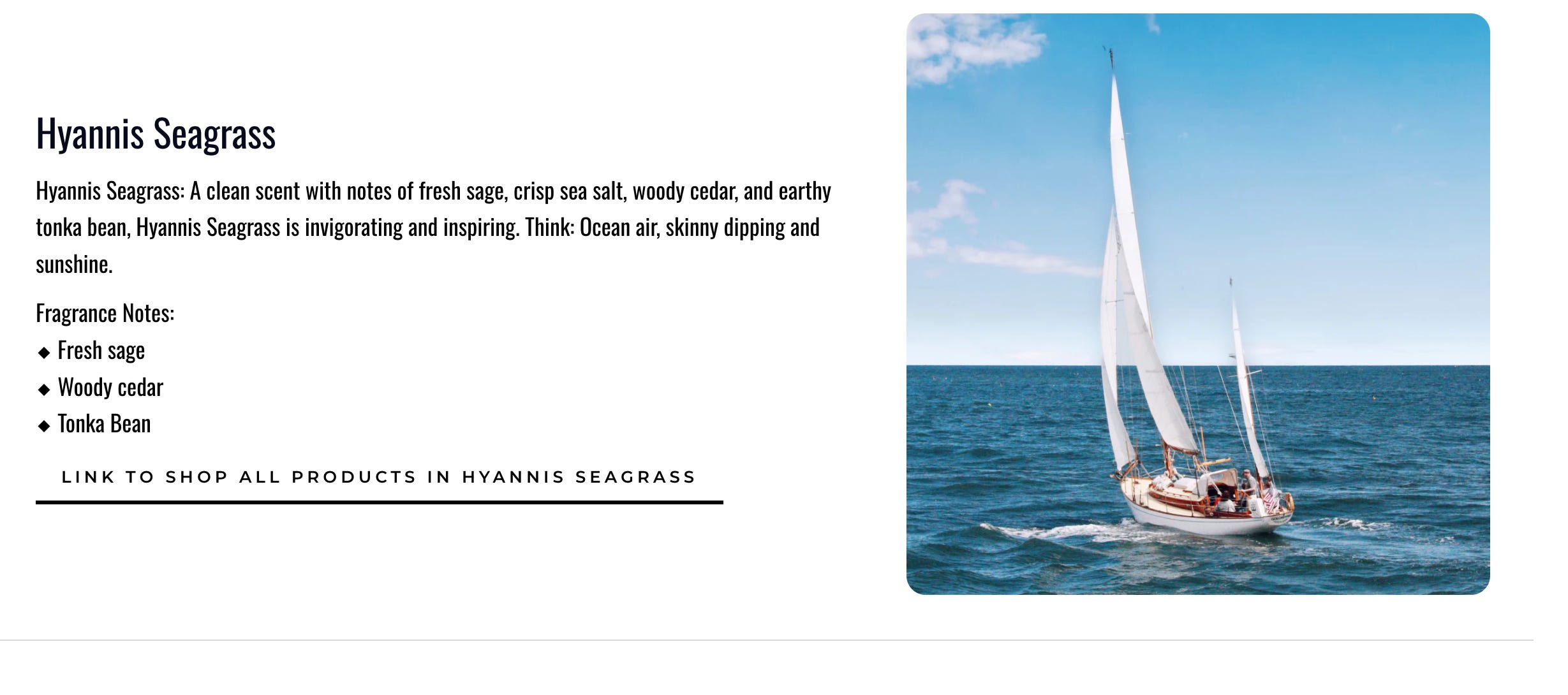 It behooves me to mention that one of the four scents available on the site is “Hyannis Seagrass,” which is supposed to smell like “Ocean air, skinny dipping and sunshine.”