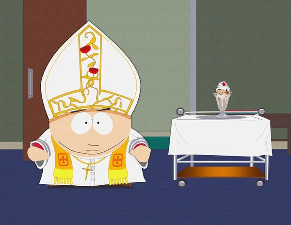 Or maybe he does. Meh, New Pope is not perfect. He's doing a lot of good, but he still leads a Church that, institutionally, considers the homosexuals to be "intrinsically disordered." So there's that.