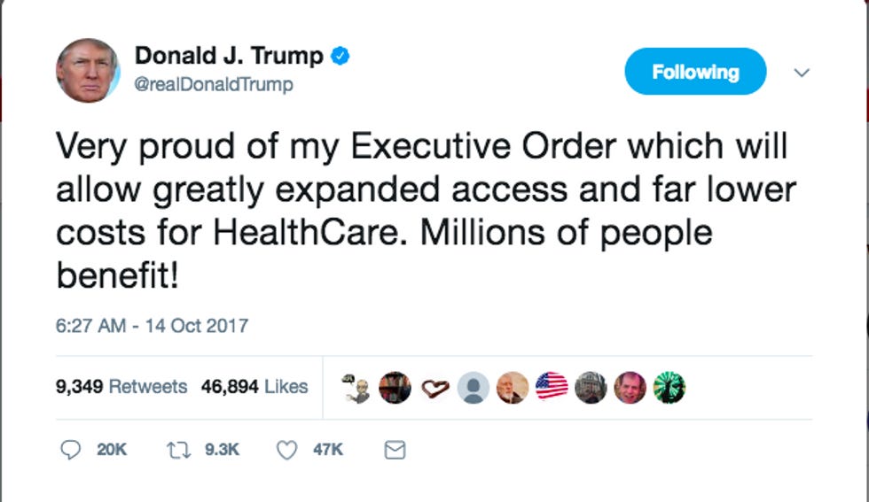 And if that wasn't enough, he's also expanded the availability of "junk" insurance plans that don't actually cover anything, allowing small businesses to band together in an "association" that will allow them to purchase these cheap plans for their employees. Will their employees actually be able to go to the doctor or anything with these plans? Probably not!