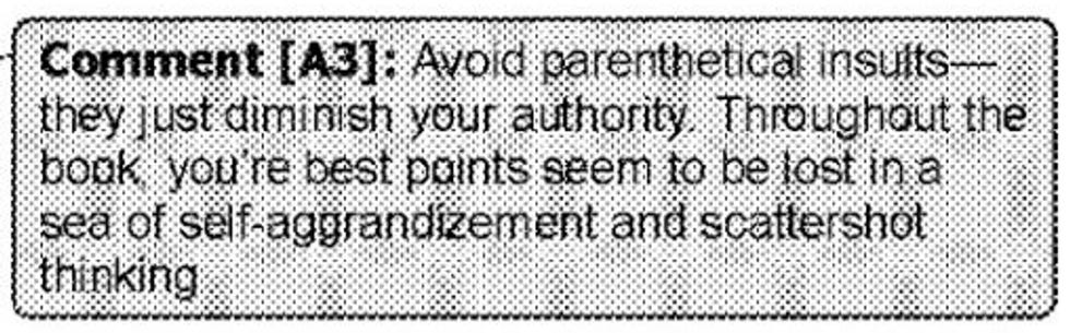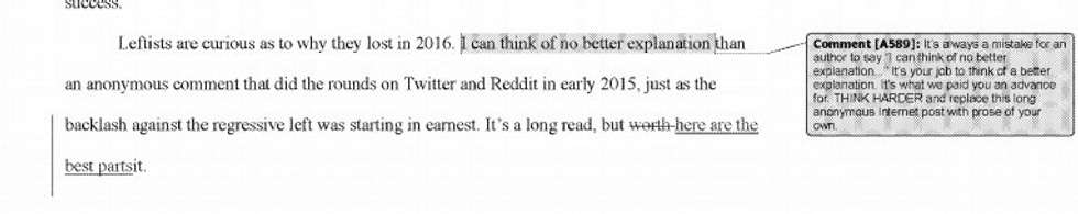 Like can you imagine being some regular conservative editor at a regular conservative imprint and you get picked to edit the biggest get of the year and you're having to write notes like this